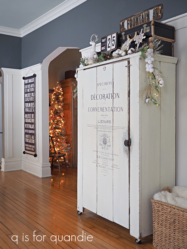 Instead of the chicken wire inserts that came with the hutch, I added some grain sack style cloth to line those two upper doors.