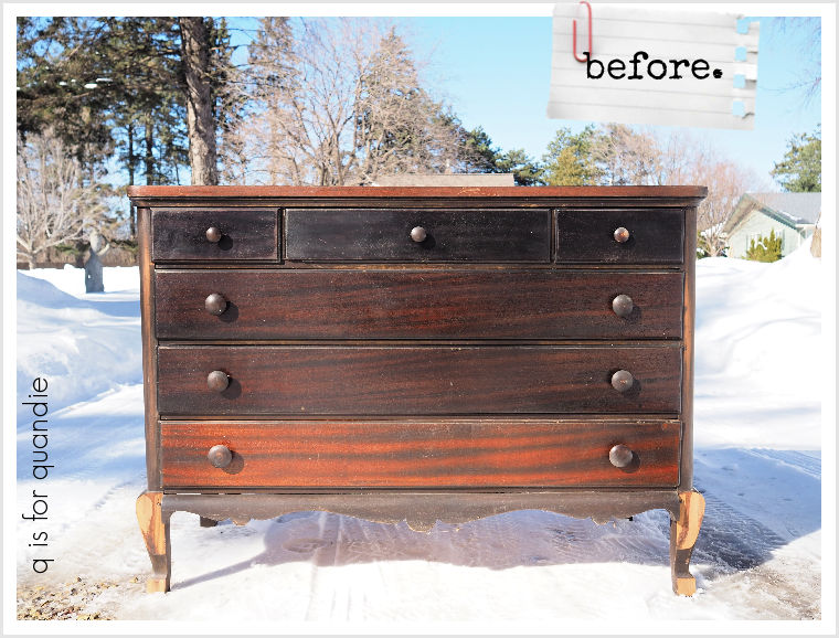 OK, in my opinion this piece was quite hideous in its ‘before’ state. Something about that sort of ombre stain job just hits wrong for me.