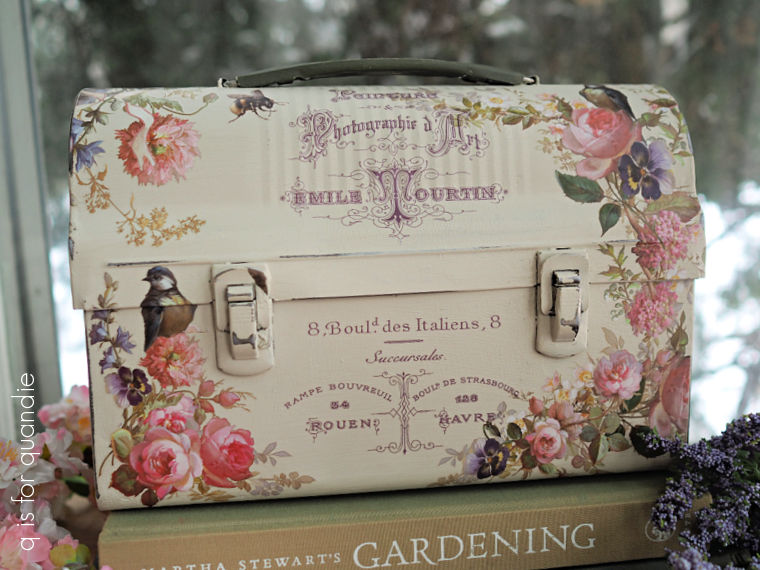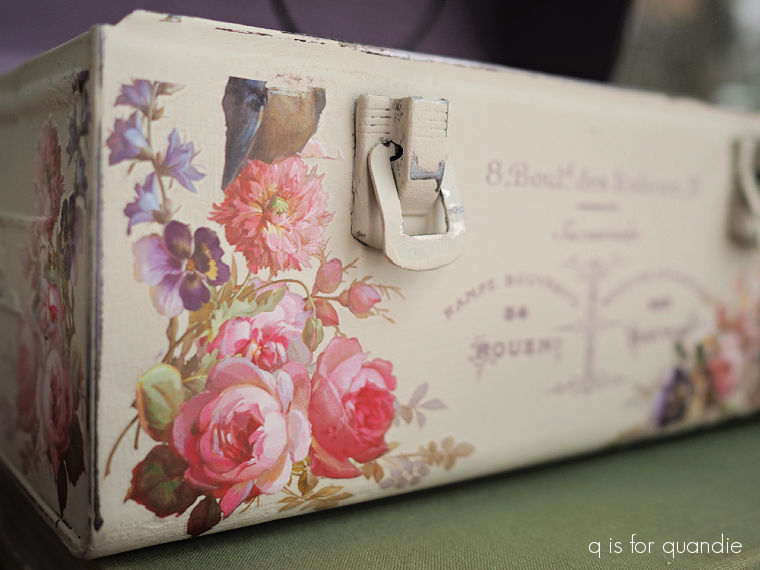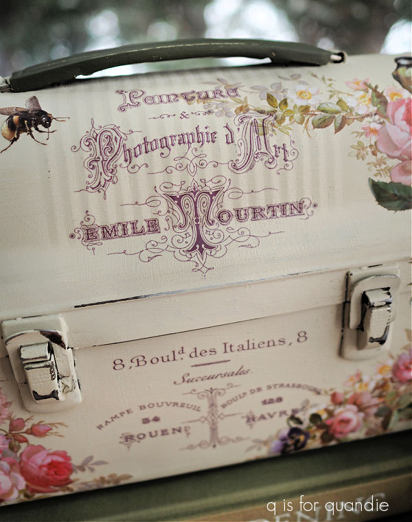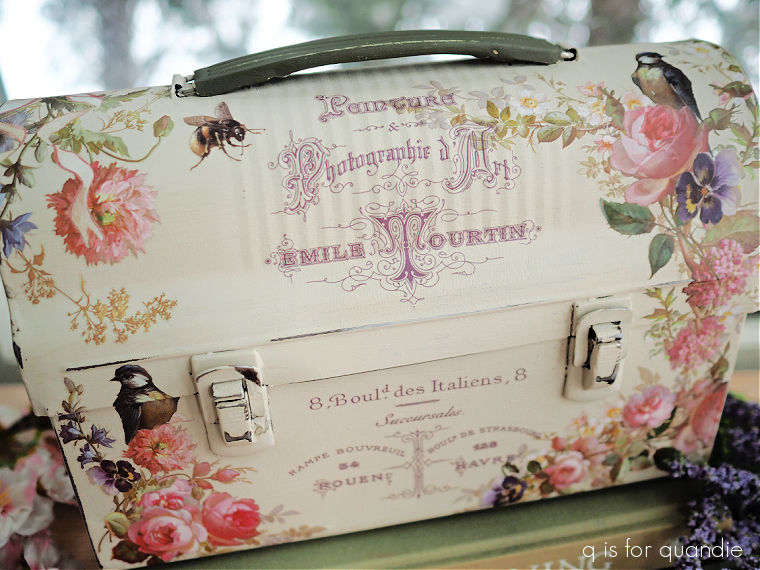 One comment that I have about the Madeleine transfer, and indeed all of the spring release florals from I.O.D., is that they are all somewhat small in scale. That makes them great for working on smaller items like this lunchbox, but I think I’d struggle to use them on a large piece of furniture (or the ginormous toolbox that I found while thrifting a week or so ago).