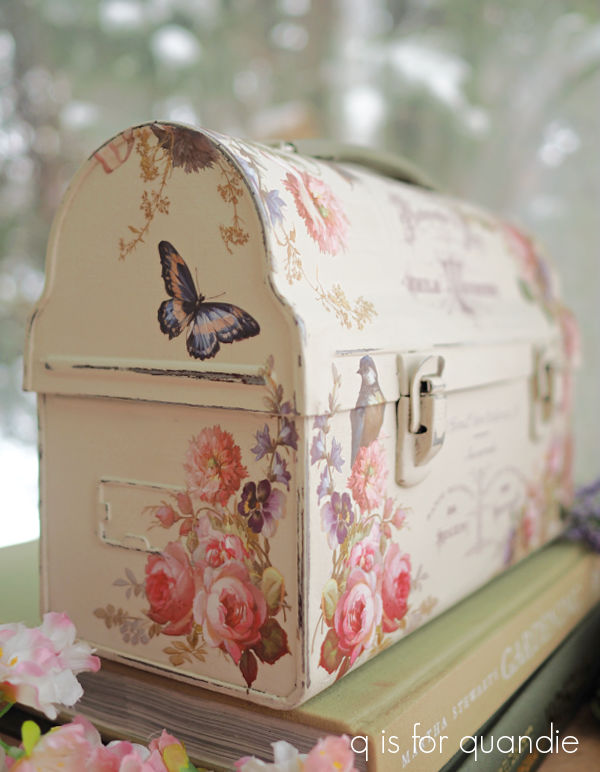 Last week one of my readers, Sheri, suggested that my floral toolboxes would make awesome Easter baskets. I thought that was a fantastic idea, and wouldn’t this lunchbox be perfect for that as well?