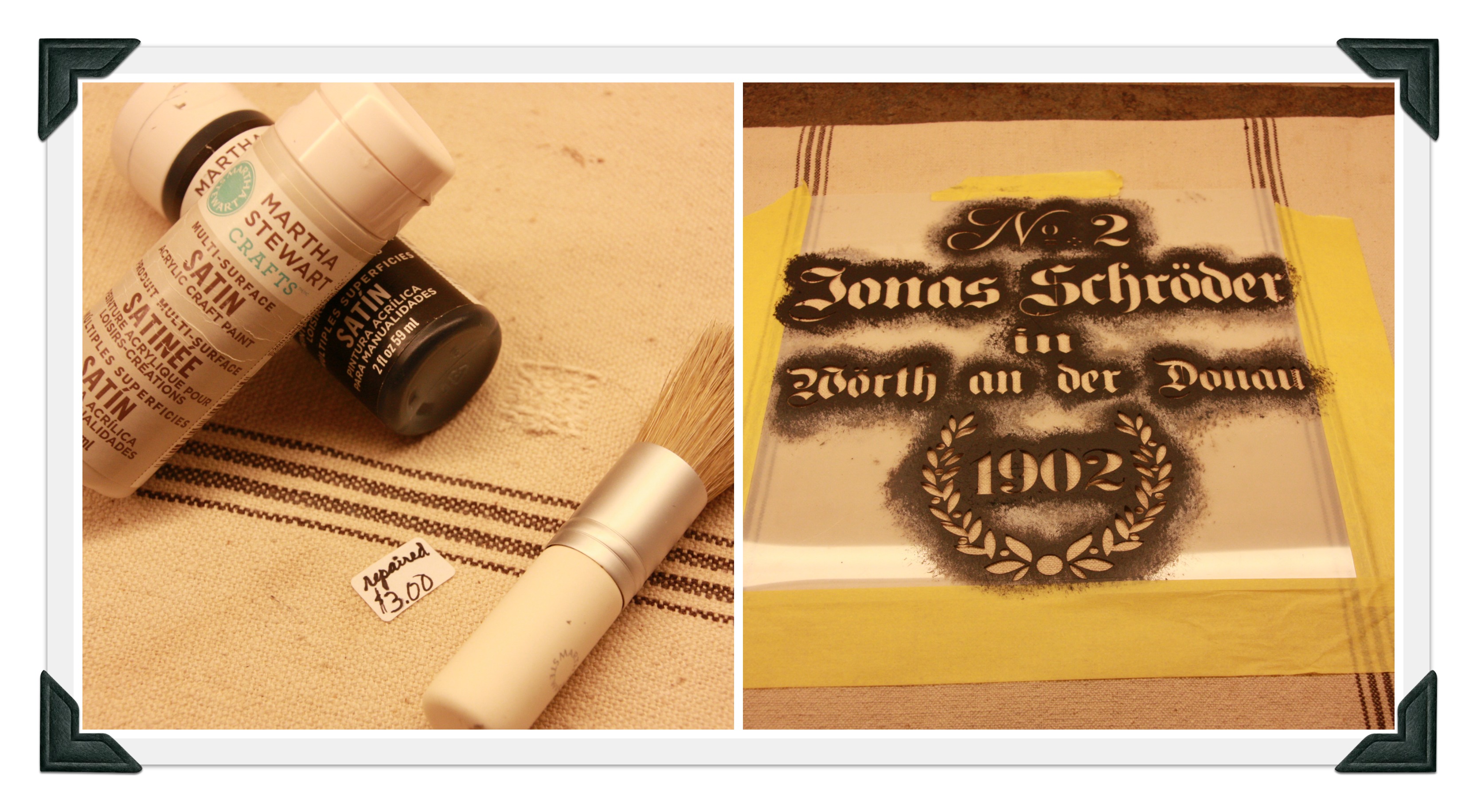 I got out the tools of the trade, some Martha craft paint, a stencil brush, and my favorite stencil.
