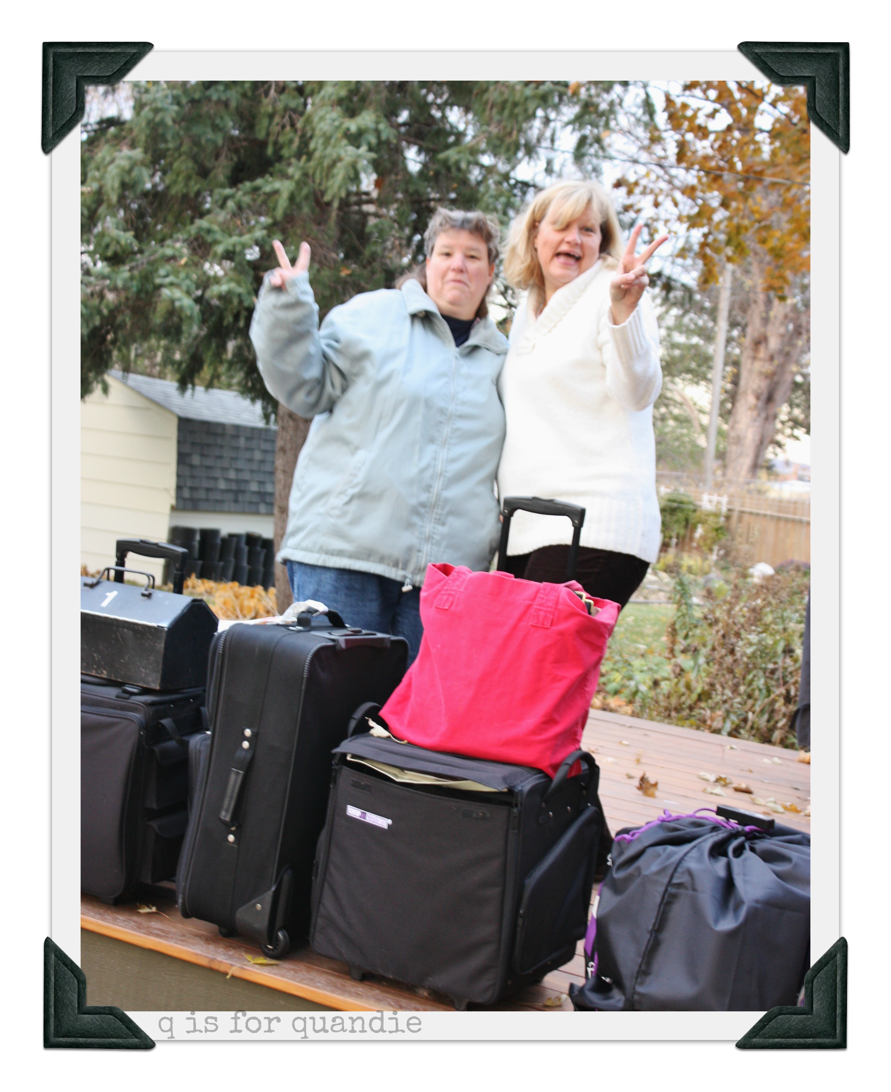 February will be here before we know it, and my sister (above on left) is once again coming all the way from New Jersey for a scrapbook weekend.  If you aren’t a scrapbook aficionado, let me explain what that entails.  We head up to Mary’s beautiful lake home bringing only soft, fleecy casual wear, no makeup, and our piles of scrapbook gear.  Mary has her entire lower level set up for us.  She has every possible tool we could need; computers, printers, Cricut machines, tables, lighting, ergonomically correct chairs and a fantastic wood burning stove.  All with picture window views of the now frozen lake.  Mary provides all the meals (home cooked and delicious) and snacks.  We spend the entire weekend laughing, eating and creating scrapbook masterpieces in cozy comfort.  It is truly heaven on earth for a scrapbooker.