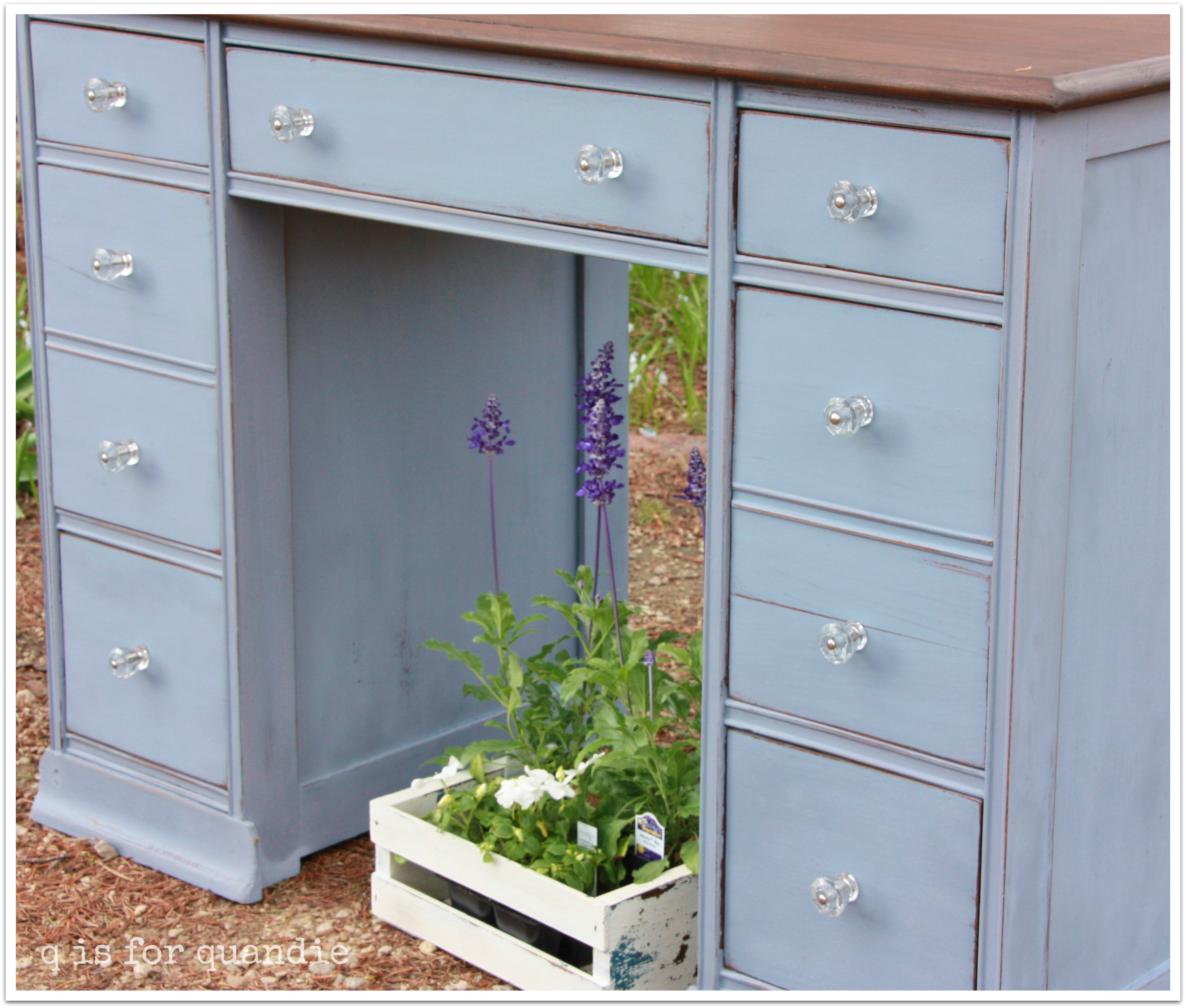 Mr. Q picked this desk up off the curb last autumn. There it sat with its FREE sign. Poor thing.