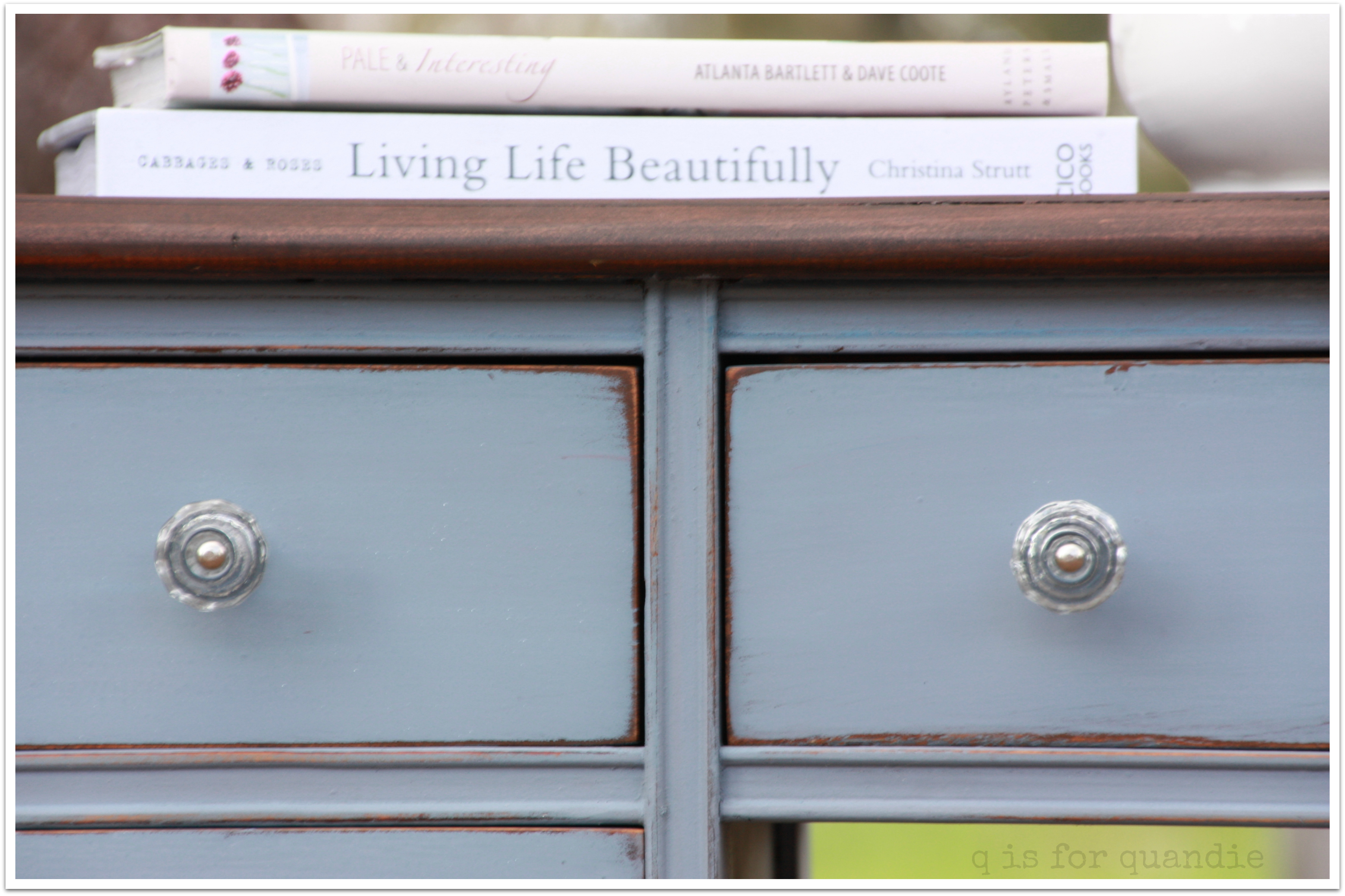 I gave the drawers new glass knobs, and I think they help up the ‘pretty’ factor.