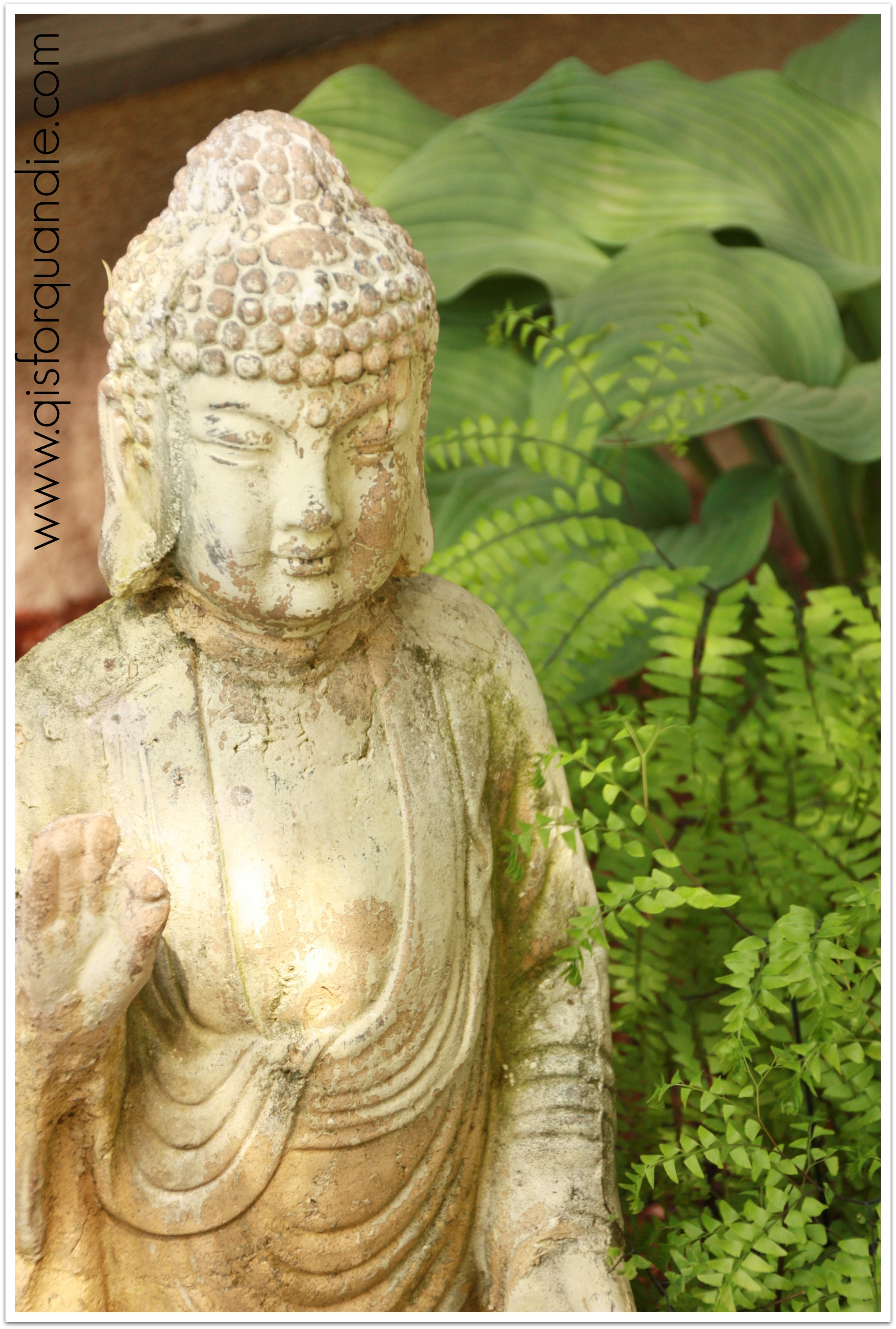 My buddha was purchased at Home Goods a few years back. He is holding up pretty well outside and has developed a nice patina. He is nestled in with my Maidenhair Ferns. I love these because they are so delicate and airy looking.
