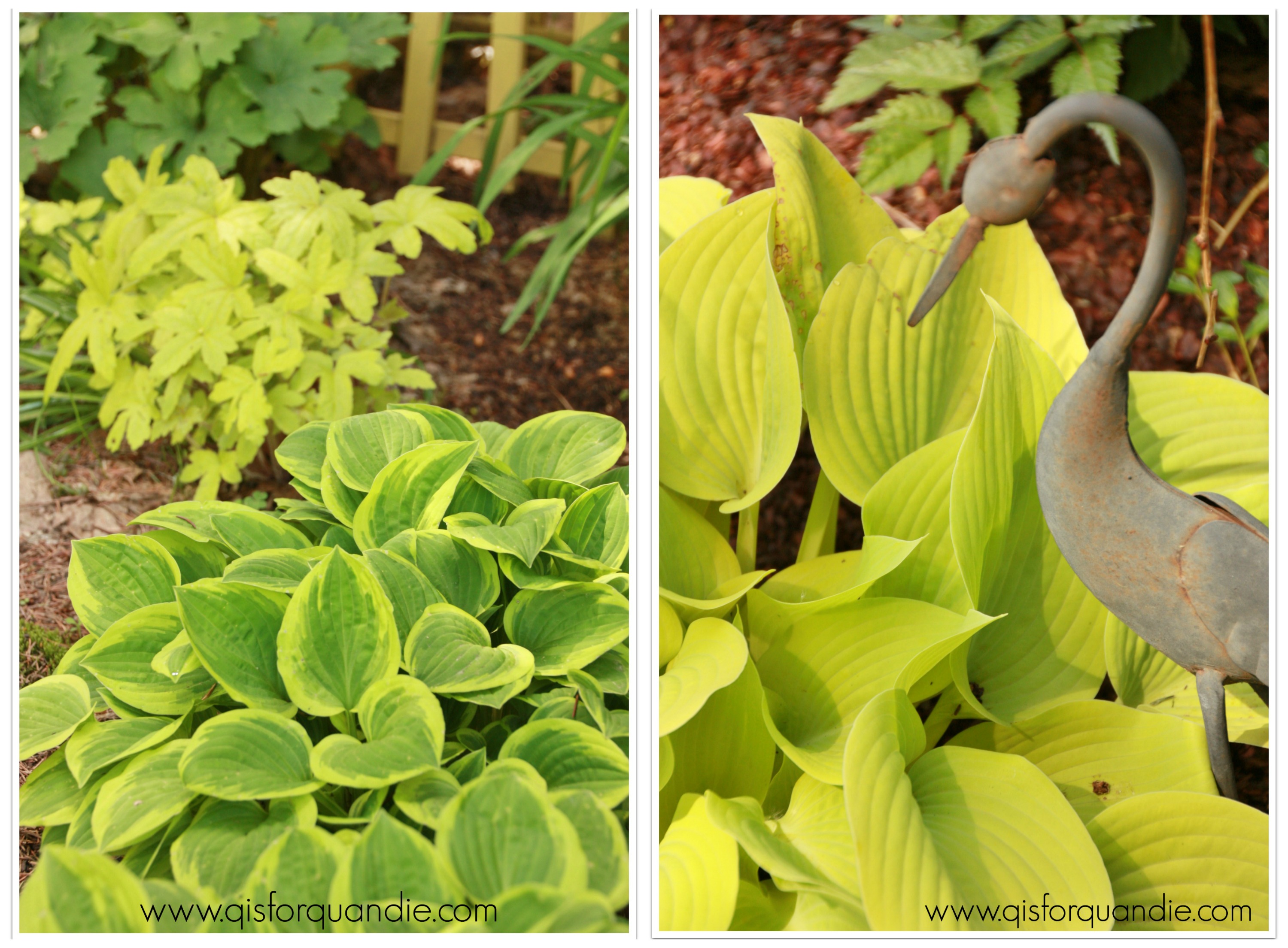 This is partly because I love the color, but also because these bright colors really pop in a shady garden. If you look closely at these photos, you can see that I use Cocoa Bean mulch in my gardens. I like how dark it gets, which also makes my bright green foliage stand out. It can get moldy in damp weather though, which can be slightly unpleasant.