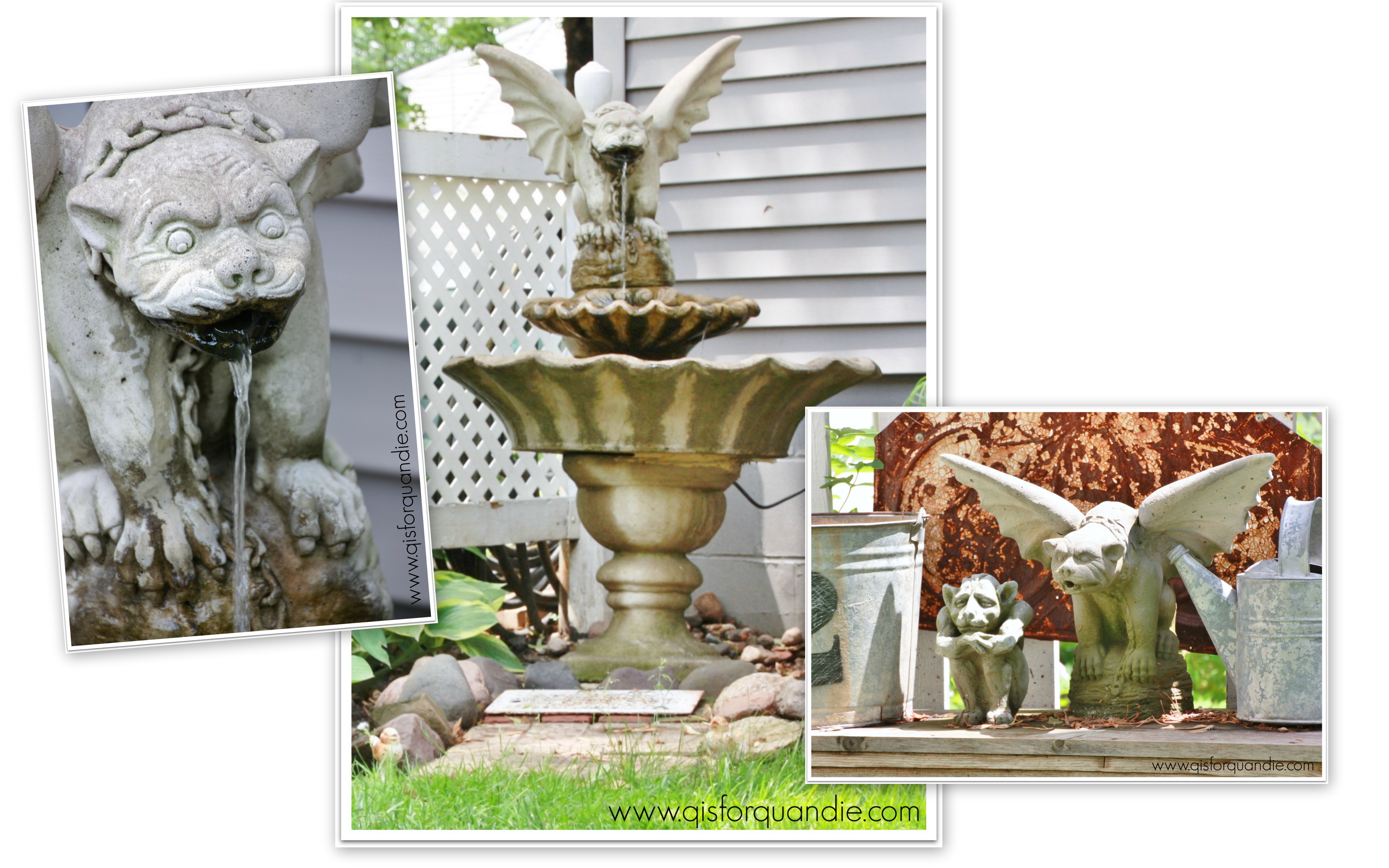 You may remember that I mentioned that Sue gave me the gargoyle in my garden.  She has quite a collection of her own including a gargoyle fountain.
