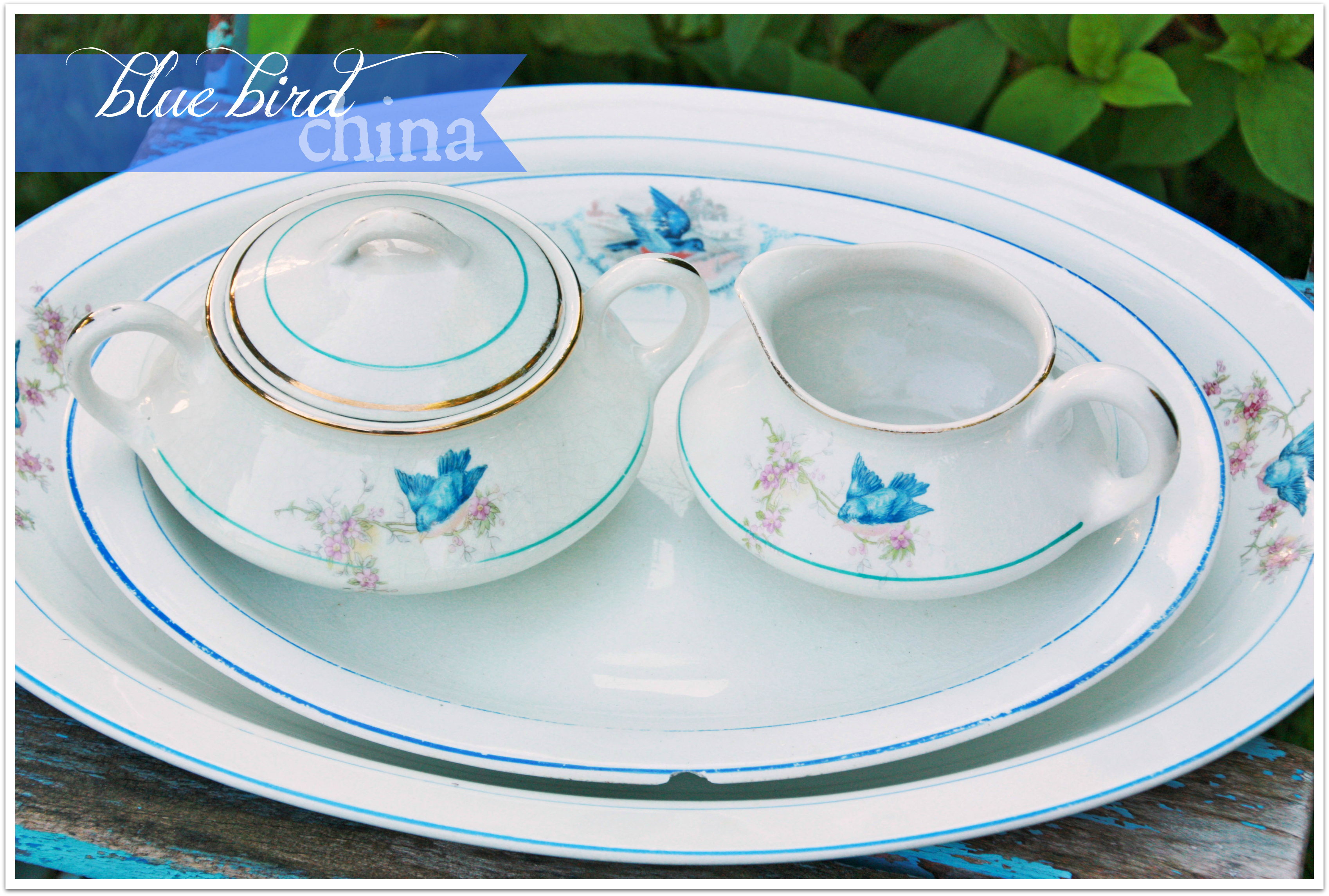 Bluebird china was manufactured by over 50 different companies in the late 1800’s to the mid-1900’s.  It was generally used for everyday.  How lovely it would be to have an entire set of dinner plates to eat from!  But most of what I have is in pretty rough shape.  Not something that I’d actually want to use.  It’s pretty to look at though.