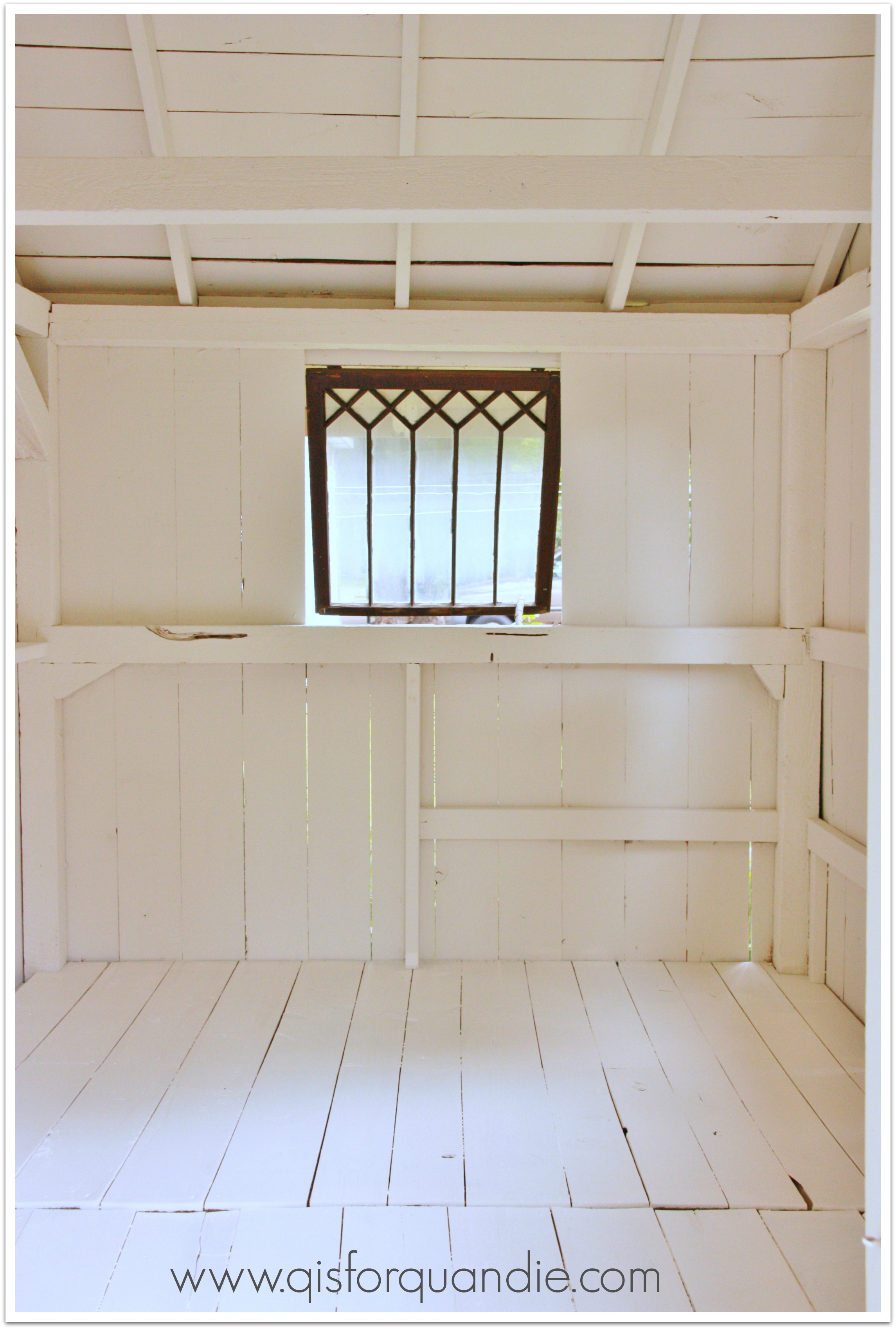 First up, I scraped the existing pink walls and then used the hose to power wash the interior.