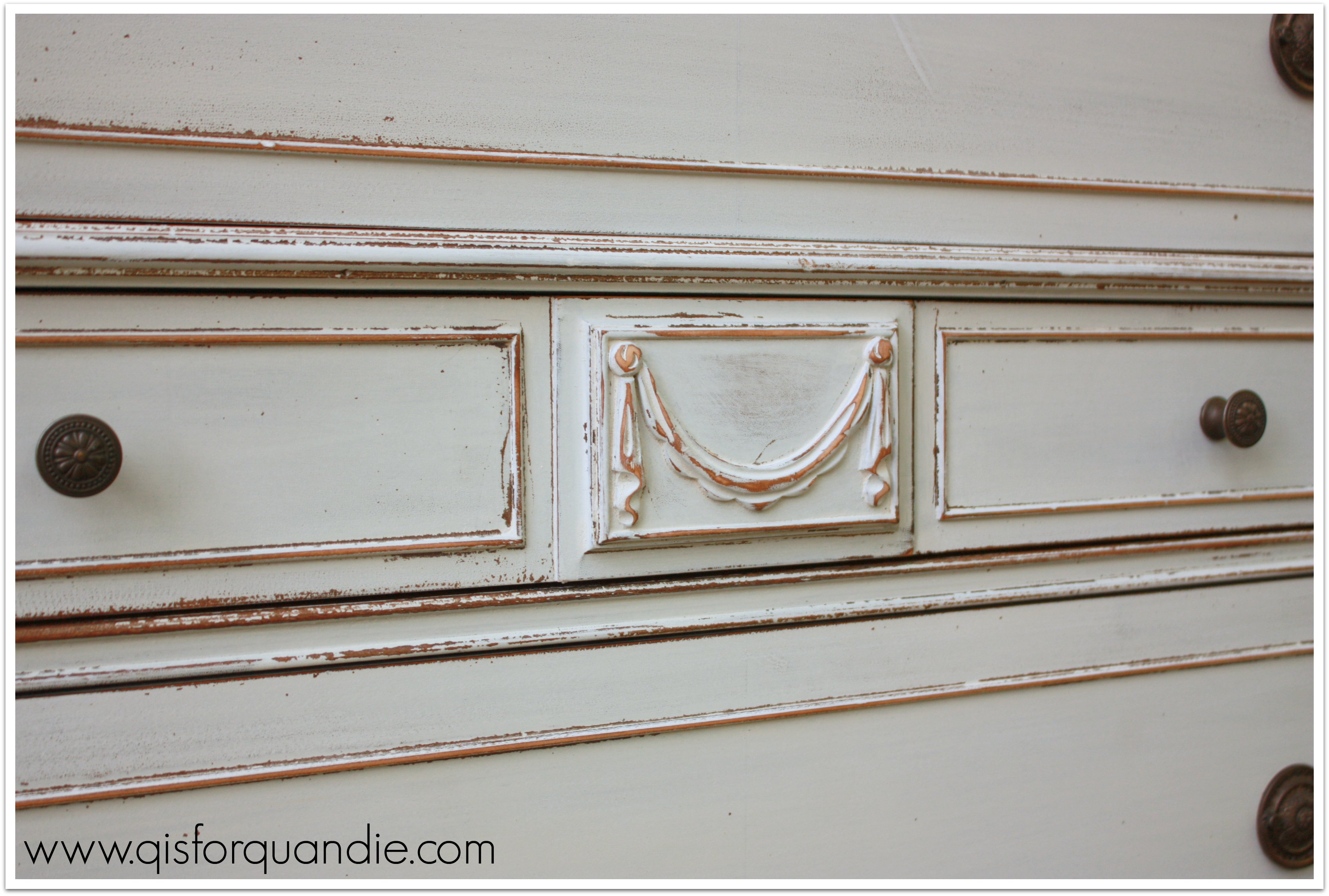 Going back and re-visiting some of my furniture rehabs from my pre-blog days has an added bonus.  I can correct the photos.  Such is the case with this one, a gorgeous dresser that I painted with MMSMP in Grain Sack last fall.