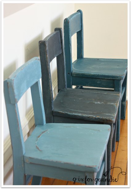 I do gots the electrified, satisfied, Quandified Blues. Amen. Love the little chairs, try to buy them when I find them! And thanks for showing the 3 shades, it really does help figure out which Miss Mustard Seed paint to purchase next.