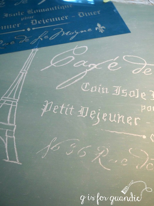 1. It’s a great trick if you don’t like to free-hand your chalkboard designs. I’m still working on improving my free-hand skills and usually am not as happy with the results I get that way.