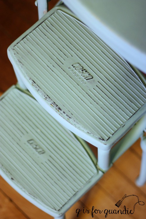When the paint was dry, I felt like the stool looked far too crisp and freshly painted though. So I sanded down the edges of the seat back. And the tops of the steps.