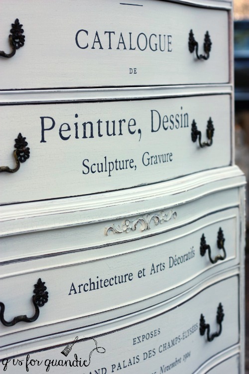 If you’re wondering about the transfer, I cut it apart and did each drawer separately which allowed me to center the design from top to bottom on each one.