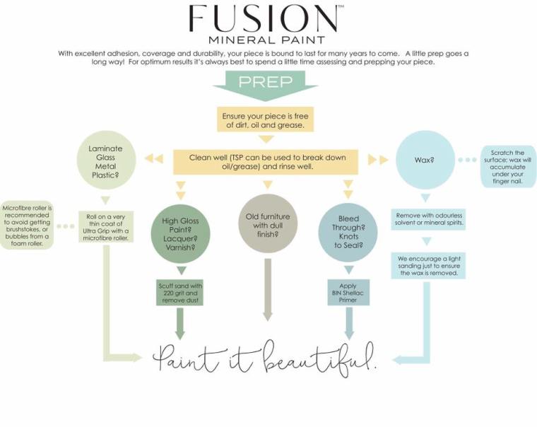 Fusion recently shared a really great chart for determining how much prep your furniture needs before painting (be sure to pin this for future reference) …