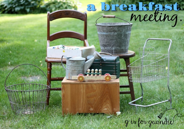 Every June my co-worker/Carriage House Sale partner Sue and I get called away from the office for a very important breakfast meeting.
