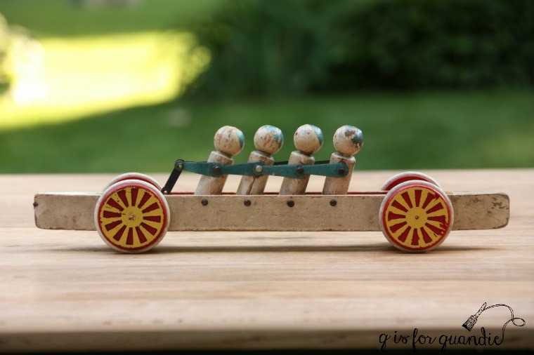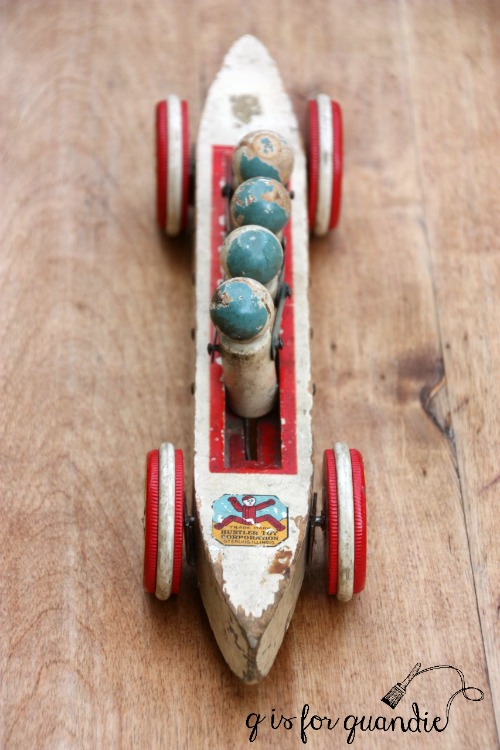 I grabbed this vintage wooden toy just because I liked the colors on it, and the chippy paint.