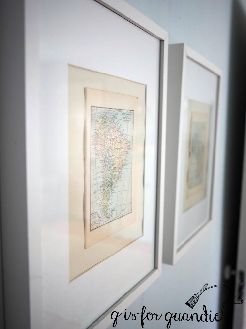 The framed vintage maps that are currently hanging on the walls are also going to go.  Those white IKEA frames are just not doing it for me anymore.