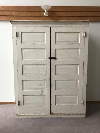 The ad was very short, it simply said “Antique English country armoire (late 18th / early 19th century) with the original lock.” And it gave the dimensions:  63″W x 17.5″D x 72″H.  But it was priced at $900, which was pretty high for me.  Still, I couldn’t stop thinking about it.  So I checked the measurements first and they were perfect for my space.  Next I contacted the seller to ask what was inside because there were no photos of the inside included with the ad.