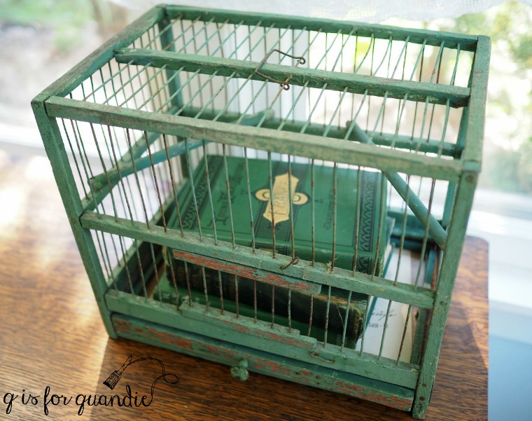 6. The tool boxes are wonderful. but it was the bird cage that made me catch my breath. It is so charming. I liked the green books inside. Just adorable!