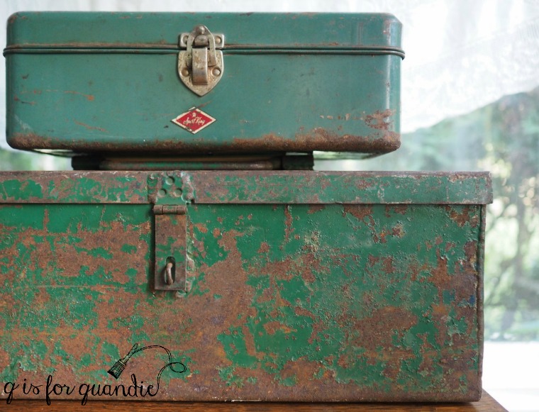 I actually came home with 4 old toolboxes, 3 of them from one sale.  The other two aren’t green though, so they didn’t make the cut for this blog post.  Although sometimes the original color and patina should be left alone, oftentimes I paint them like this …