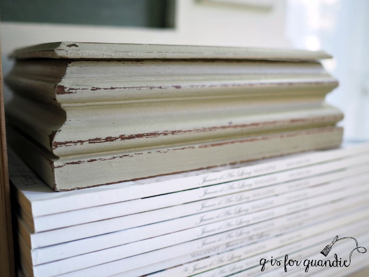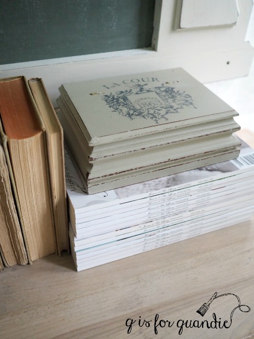 6. These are darling and I love those transfers. Since many of us now use a table as desk while we may gain surface area we lose storage capability. This would be perfect to store my stapler and other little office supplies right on top yet out of sight.