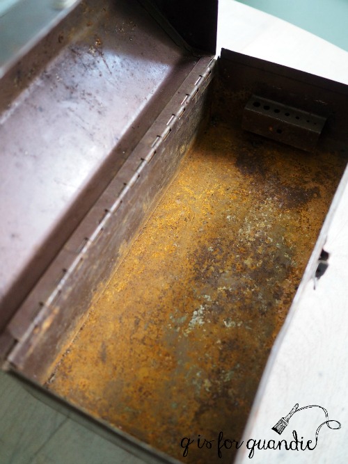 The toolbox isn’t terribly bad on the outside, but the inside was quite rusty.  It was rather greasy and dirty as well.