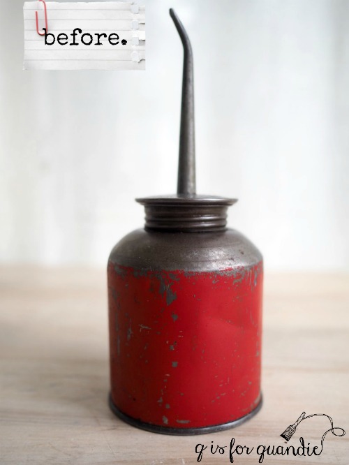 For starters, I found this oil can at a garage sale last summer and loved the patina of the red paint.