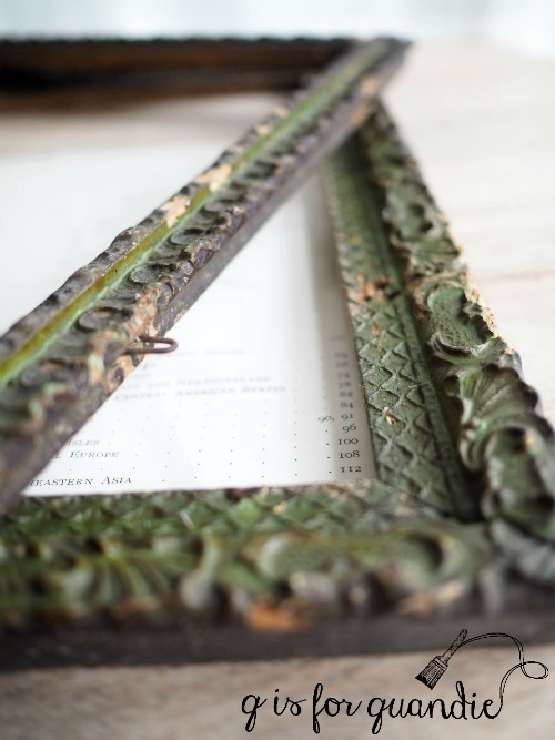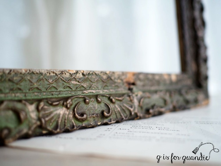 They are fairly beat up, which is part of what I love about them, and they also have a hint of green to them. I thought it might be pretty to add just a bit of metallic shimmer to the high points on the frames.