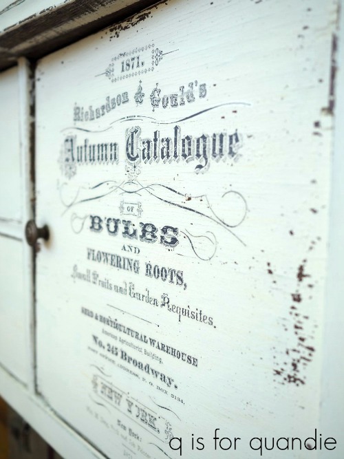 I was initially planning to use my new IOD Decor Stamps on this piece, but as I was digging through my supplies I came across this smaller version (11″ x 14″) of the IOD Richardson Seed transfer and realized it would fit perfectly on the door.