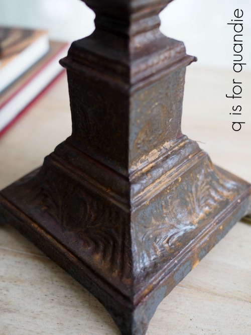 3. Ok, I love the patina on the lamp, but my favorite part is that you covered the top with an old book page. I have just the lamp I’m going to try that on. Linda, you are so creative.