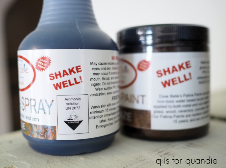 I really want to say that the paint should be shaken, not stirred (you know I love my Bond) but I think you could also stir it if you prefer.  But the important thing is that you mix it well in order to distribute the metal flakes throughout.  These are what will give you the patina that you want.  If you don’t get them well mixed you will be disappointed with your end result.