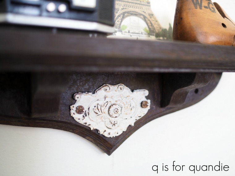 The easiest way to get rid of a heart is to just simply cover it up.  That’s what I did with the heart cut out on this little wall shelf.