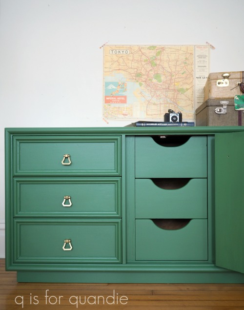 3. Perfect piece for the era. I love these big pieces, even though they are heavy. Your pick up sounds like quite the adventure! And while I have to say I liked the original drawer pulls the new pulls add so much it was totally the right call. I proclaim you the Princess of Park Bench to reign forevermore, or at least until your next favorite color is chosen.