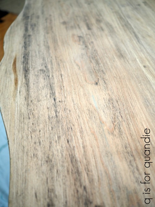 White washing or pickling gives a similar look but is done with either watered down white paint or a commercially made white wash or pickling stain.  According to my research, white washing and pickling are very similar treatments but not exactly the same thing.  When a piece is white washed, the stain or paint is applied with the grain and is best suited for woods like pine.  When a piece is pickled, the stain or paint is applied against the grain and this treatment is best suited for oak.  Personally I think that’s a rather fine distinction and that most people use these two terms interchangeably.