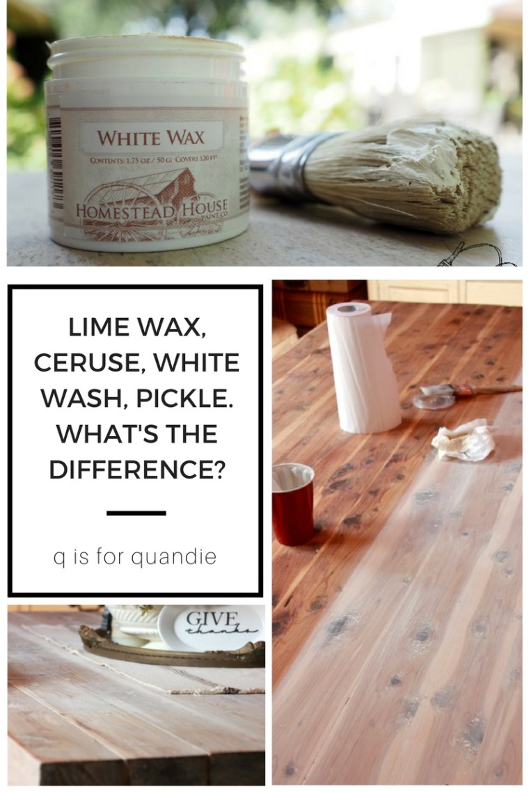 I hoped you’ve learned a thing or two about white washing v. lime waxing today.  Check back later on Wednesday when I’ll share a piece where I used both techniques together.  Sort of.  In the meantime, be sure to pin this post for future reference!