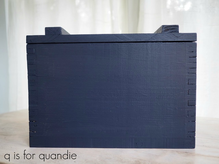 When painting a box with a hinged lid like this with Fusion paint, be sure to leave the box to cure a bit with the lid open.  If the paint is even a little bit tacky and you shut the lid it will pretty much seal shut.  Another lesson learned the hard way.