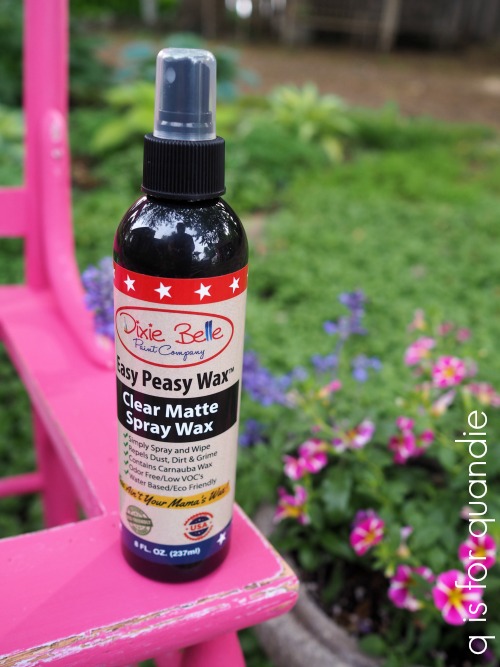 Speaking of wax, you know how chairs are so much easier to paint if you spray them? Well, when I went to wax this chair I remembered that a while back Dixie Belle had sent me some of their Easy Peasy spray wax.