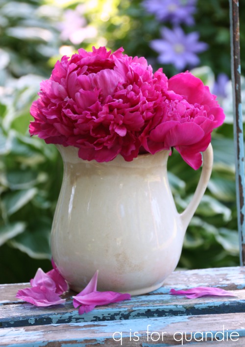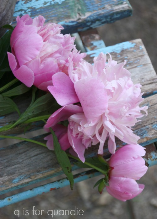 I love peonies! Besides loving the most beautiful fragrant flowers, I also love the fact that the foliage stays green and full all summer long. I too have several different kinds in my garden. Have you ever had a Peony tree? They are very prolific and also have an abundance of blooms. I love the pink garden garden chair. Great pop of color!