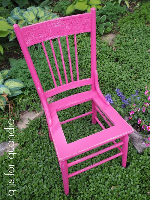 Love the pink chair! I can just see it holding a pot of purple and white petunias in the garden!