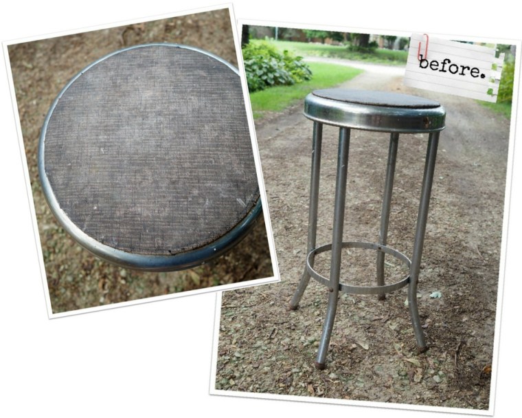 Another purchase from Mac-Grove that I’ve already revamped is this simple chrome stool.  It was pretty dirty and had a skanky old vinyl seat.