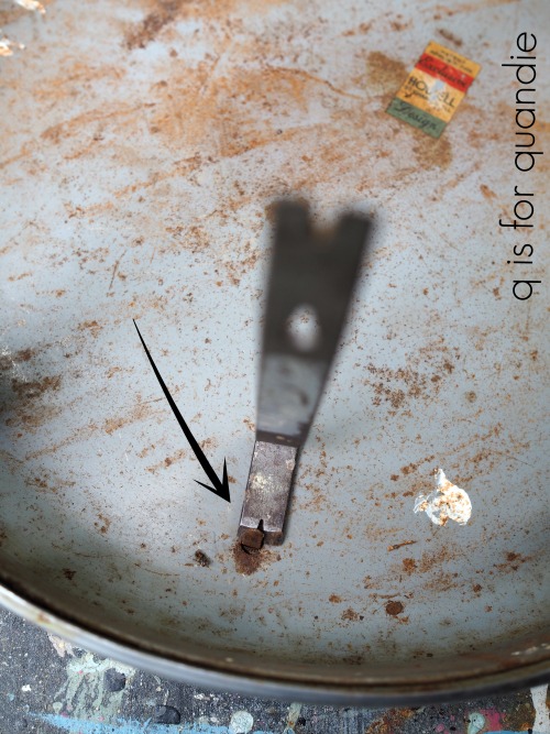 I started by removing the seat.  When I flipped the stool over I found that there were metal tabs that were folded over to hold the seat in place.  It’s easy to lift them up and take the seat right off.