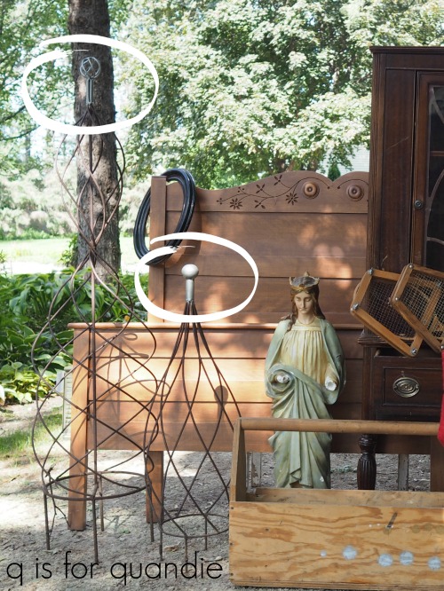What a fun day of garage sales and treasures! I love everything you found, but the non collection of ornament are sublime. The statue of Mary is so beautiful. Too bad Ken can’t make some wooden hands for her. China cabinet will be interesting to see what you do with it and I’d leave the bed as a bed, you can attach an iron bed frame to it (well, Ken can) and make it useful! But I’d you go with a bench, I’d cut off some of the headboard to make the back a little shorter this time. And I’m trying to figure out what is on top of the China cabinet on the right in the first photo. Inquiring minds…