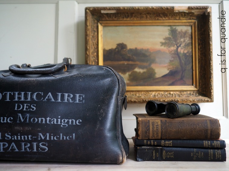 Fun black leather bag, it has lots of patina – and I bet it has seen some interesting things! Thanks for the color of stencil tip, and the link to the stencil shop. I may just have to get some new stencils! Although I just read somewhere that signs were passé, but they are always one of my favorite things. Words, words, words….