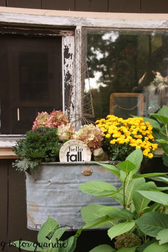 Then there were the ‘hello fall’ toolbox planters. The one on the bottom is painted in Fusion’s Mustard. The one on the top is in its original red.