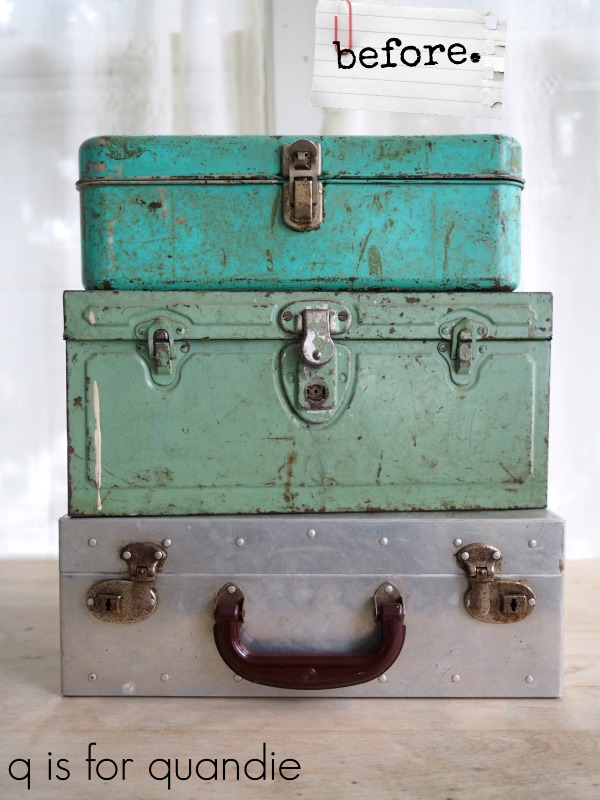 I’m guessing that I’m not the only one here who likes a rusty old toolbox.  Sometimes I re-paint old toolboxes, but when they are already a fab color I like to leave their original rusty patina alone.