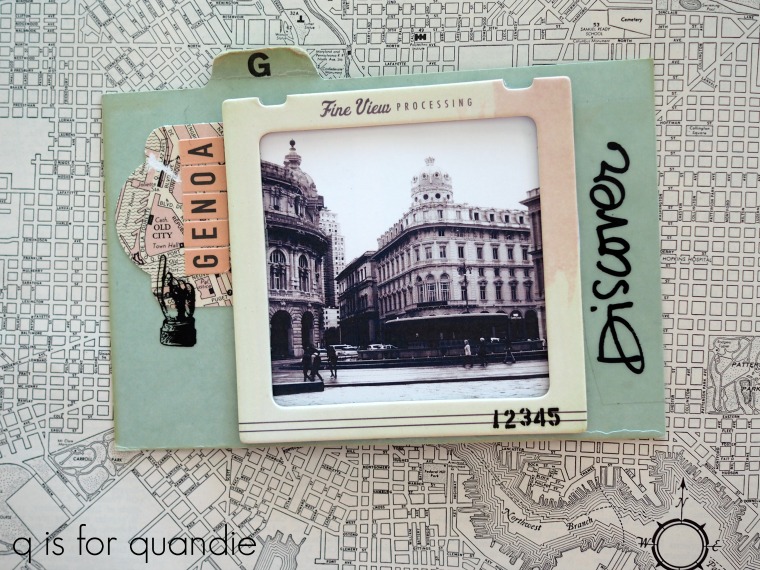 October Afternoon has always been my favorite brand of scrapbook supplies.  They were also a local company here in the Twin Cities, but I think they have gone out of business (does anyone know?).  They haven’t posted on their Facebook page since 2016, so I’m assuming they are defunct.  Luckily I stocked up at a couple of their warehouse sales and now have a lifetime supply of their stuff.  I love that all of their papers and ephemera can be mixed and matched and they always work well together.  My favorite product line was called Travel Girl; it couldn’t have been more perfect for me.