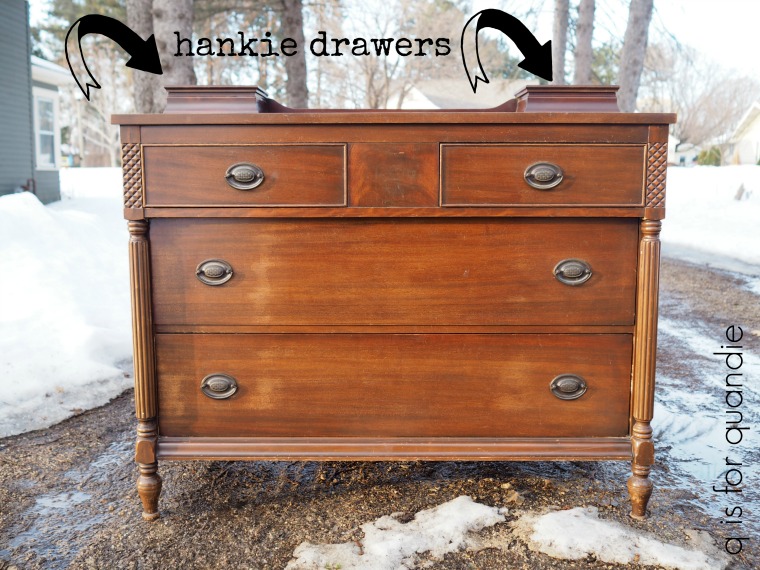 I often remove them from dressers when I restyle them because I feel like a flat top is more versatile than one with hankie drawers on it. For example, you can now use the piece to hold your wide screen TV, or use it as a buffet in the dining room. Plus, who actually uses hankies anymore?