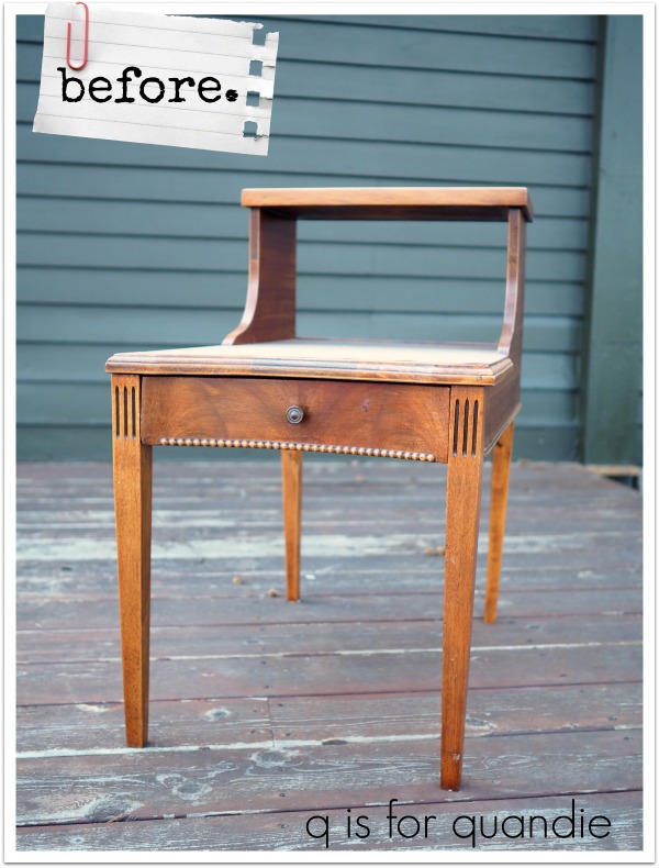 I also swapped out the knob on the little drawer. The original knob seemed a bit small to me. I happened to have a wood knob that matched the table top perfectly.