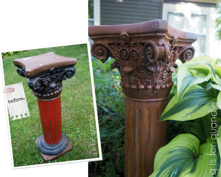 I think this is a personal preference thing. Plus, for a garden ornament I’m not too worried about the rust rubbing off onto other things, so that part wasn’t necessary for me. And, as I mentioned, this pedestal held up quite well outdoors last summer without a top coat, so I’m not sure I needed the extra durability.